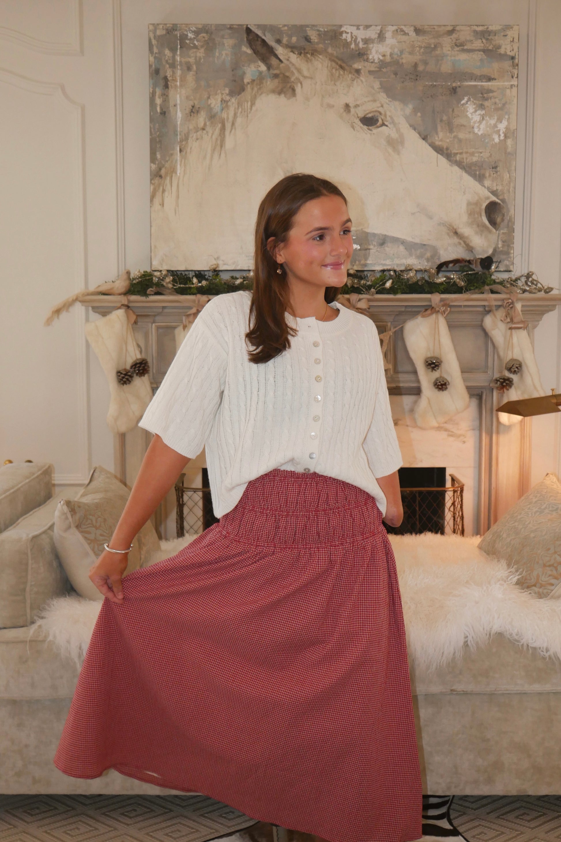 A ribbed cream half-sleeve sweater with a soft, stretchy fit and rich color. Perfect for layering or wearing on its own, it’s cozy, stylish, and easy to wear.