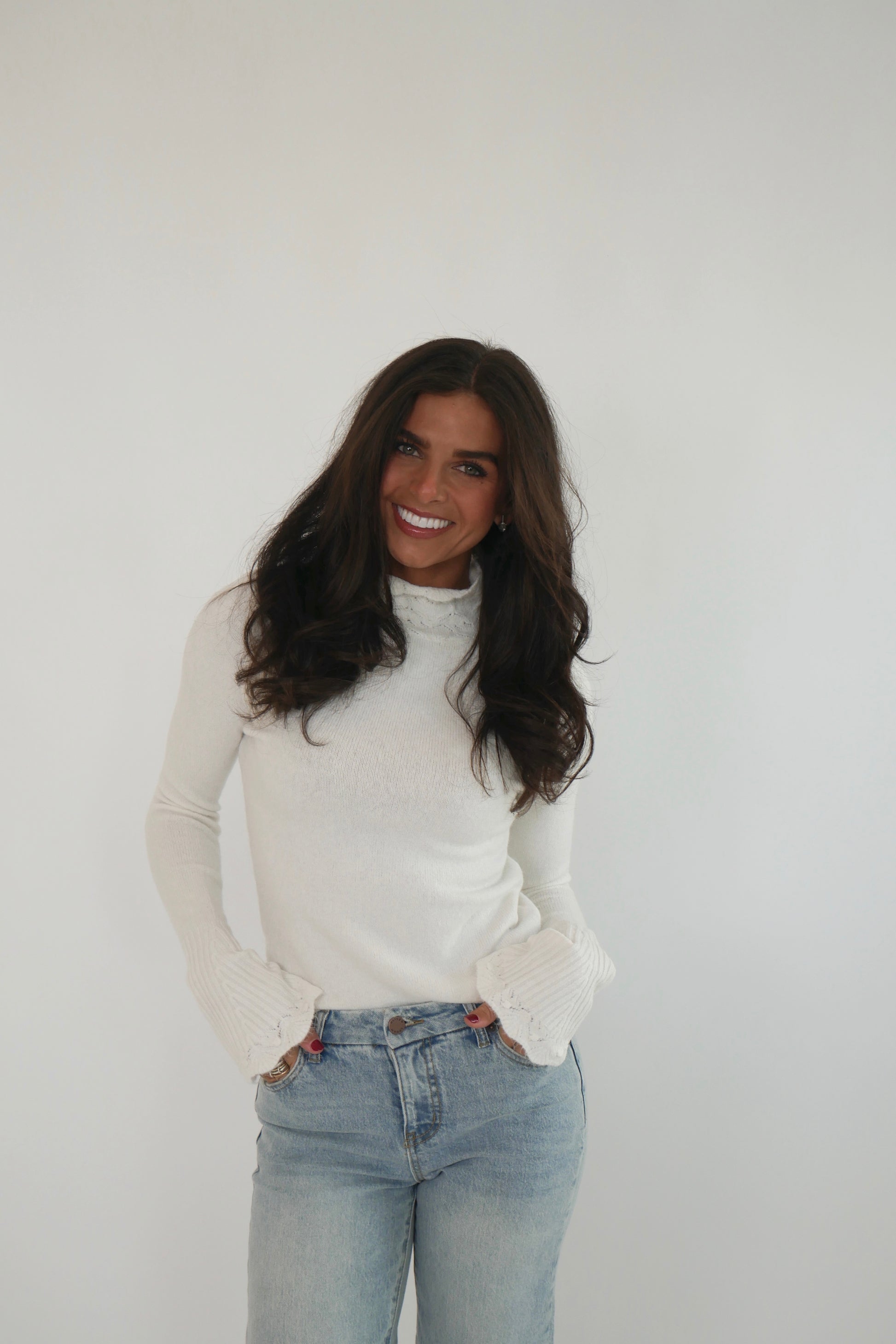 A luxurious soft-knit turtleneck sweater crafted for effortless elegance. The plush, finely woven fabric drapes beautifully, while refined detailing around the neckline and along the arms adds subtle texture and sophistication. Polished yet cozy, it’s a timeless piece designed to elevate everyday dressing.