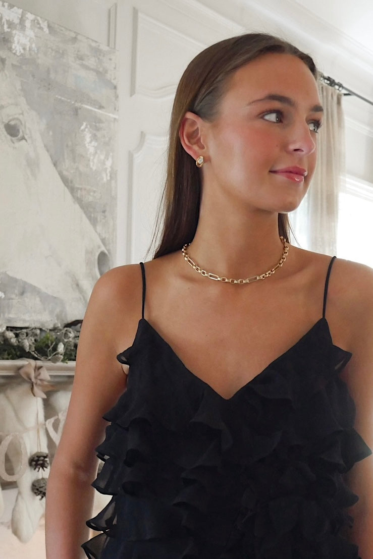 Discover the beauty of the unique Tori Studs, featuring a chic chain link design with a sparkling cubic zirconia stone at the center. Simple yet sophisticated, these earrings add a touch of class to any look, effortlessly blending elegance with everyday wear.